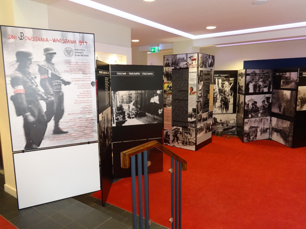 "Days of the Uprising - Warsaw 1944" is a symbolic exposition. It refers to the concepts and symbols that characterize the Warsaw Uprising in a particularly full and expressive manner. Individual panels refer to the heroic struggle of the insurgents and the collective effort of the capital residents showing immense solidarity, heroism and self-sacrifice. The exhibit also tells the stories of the relief of Home Army units, the hope of support from the Western Allies, which turned out to be dim, the wasted effort of the Berling Army soldiers killed in the Czerniakow Beachhead, the betrayal of the"ally of our allies" and the agony of waiting for the city and its defenders. The visitors will see large canvases, arranged with the use of space and light, and photographic panels depicting the tragedy of the Home Army soldiers and Warsaw residents. The exhibition is accompanied by Polish and German documentary footage of, as well as some information and education section designed especially for the younger audience. It was the intention of the organizers was convey the atmosphere, which was accompanied by a dramatic months of the Warsaw Uprising.