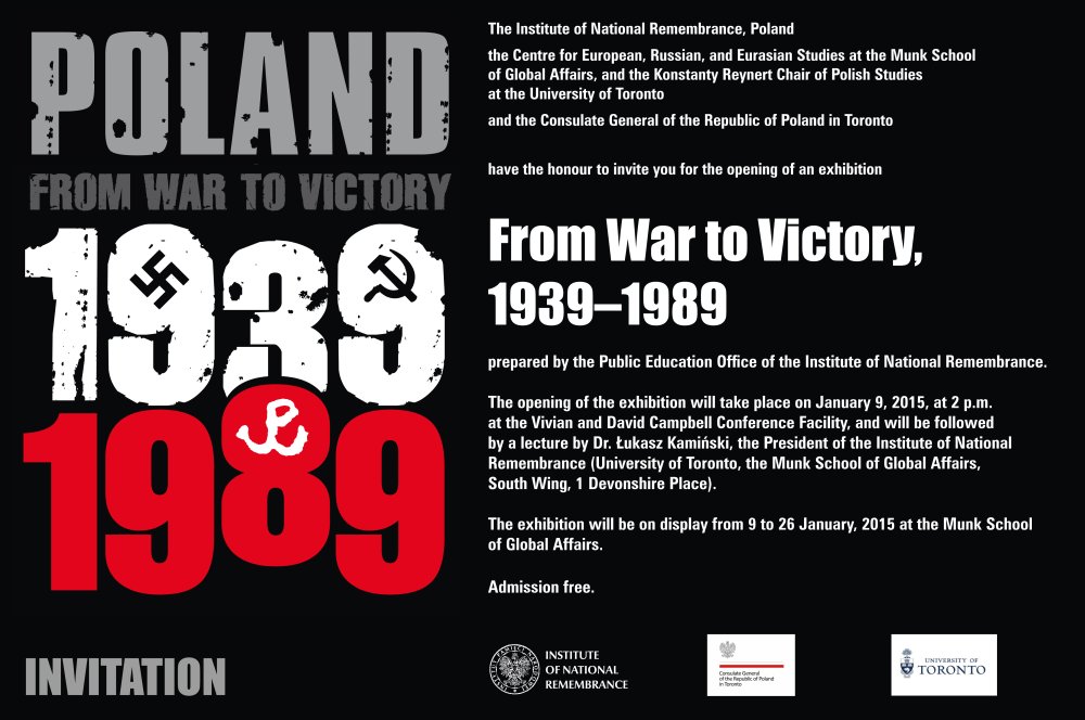 The exhibition „From War to Victory, 1939-1989” will be presented in the Munk School of Global Affairs of the University of Toronto on 9-26 January 2015. The exhibition was prepared by the IPN Public Education Office.