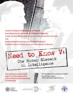 People play a key role in the intelligence process; they constitute intelligence organizations and formal structures; they fulfill intelligence procedures; they take part in informal groups, rituals and discourses; they define who their enemy is; they carry out operations; they work as case officers; they are recruited as agents; they live next door under cover; they analyze and interpret the collected information. In the end people decide if they want to believe the results presented to them. Despite NSA, hackers, digital surveillance and data mining are today in the eye of the public, the human factor cannot be ignored when studying intelligence. Thus, the fifth Need to Know conference was focused on different aspects of the human factor in the intelligence process.