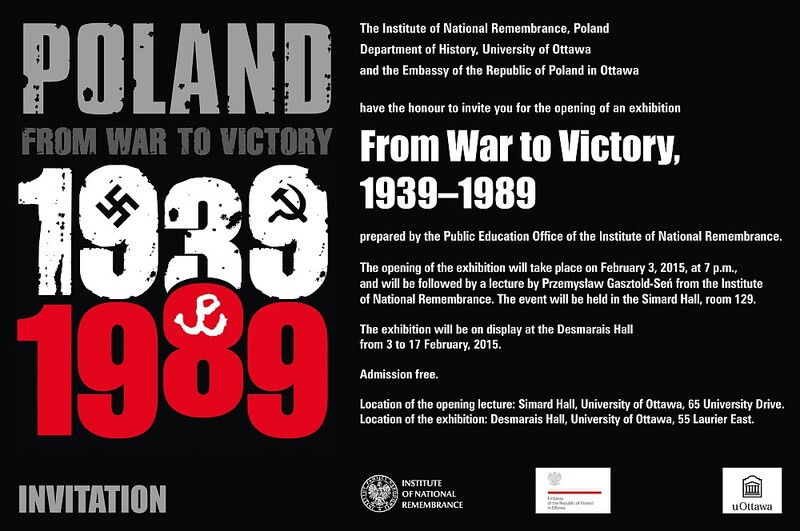 Institute of National Remembrance (Poland), Department of History, University of Ottawa and the Embassy of the Republic of Poland in Ottawa have the honour to invite you to the opening of an exhibition „From War to Victory, 1939–1989” prepared by the Public Education Office of the Institute of National Remembrance.