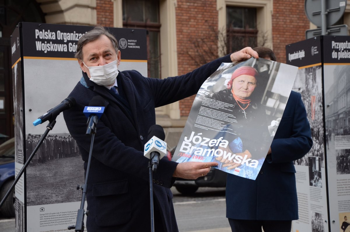 On Saturday, 20 March, the Jan Matejko Square in Cracow saw the first presentation of the IPN’s new exhibit devoted to the Silesian Uprisings. At noon, a briefing for journalists took place there, attended by the President of the Institute of National Remembrance, Jarosław Szarek, the Małopolska Province Governor Łukasz Kmita, advisor to the Silesian Governor Czesław Sobierajski, heads of the IPN’s branches in Katowice and Cracow Andrzej Sznajder and Filip Musiał, as well as the panels’ author, Aleksandra Korol-Chudy. The event opened a series of the Institute’s exhibitions devoted to the Silesian Uprisings, which are to be shown in all cities in the region.