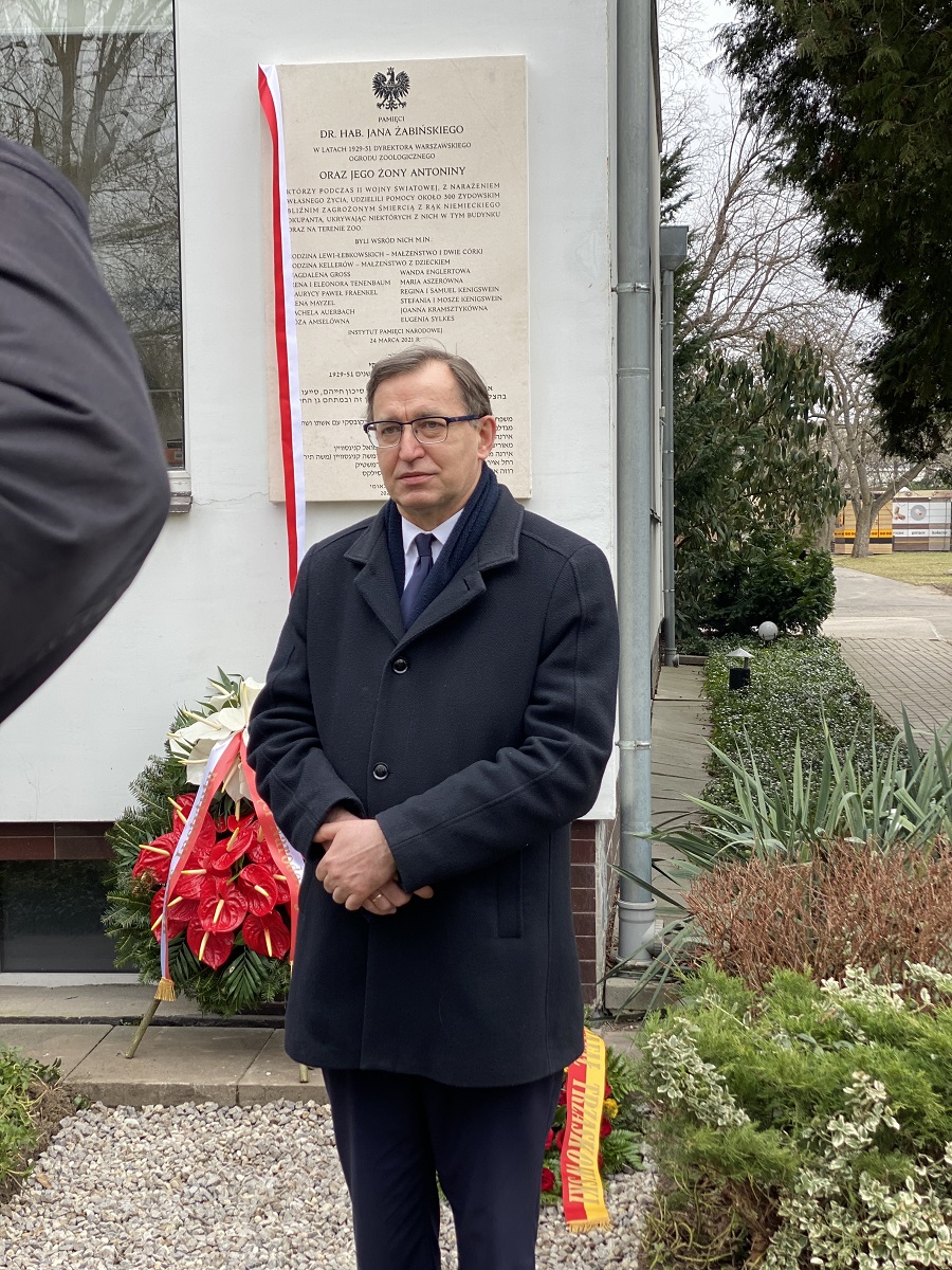 In connection with the National Day of Remembrance of Poles Rescuing Jews under German occupation, the IPN’s President Jarosław Szarek, Ph.D., unveiled a plaque commemorating Jan and Antonina Żabiński – eminent Polish natural scientists honoured with the titles of Righteous Among the Nations. During the Second World War, the Żabińskis saved many Polish citizens of Jewish descent, providing them with shelter in the Warsaw Zoological Garden.