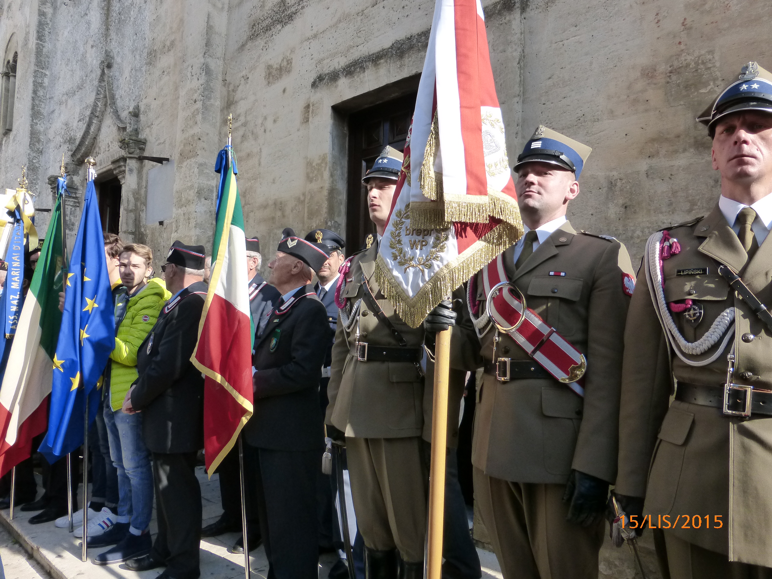 The Polish delegation also visited other places important to the Poles in the region. When, in December 1943, troops of the Polish II Corps began to land in Italy, it was in this area that a base for them was created - the rear unit were left there, there was a great field hospital, and later educational facilities and a school. In the town of Mottola the delegation took part in a solemn Mass at the Cathedral of Santa Maria Asunta, celebrated in Polish by Father Zbigniew Kępa, chaplain of the Military Ordinariate. A symbolic bunch of flowers was laid at the altar of Our Lady of Ostra Brama. The altar was founded by Polish soldiers, and the flowers were laid there almost exactly on the 70th anniversary of the unveiling of the altar, which took place on 16 November 1945. At the Cathedral entrance there is a plaque in Polish and Italian: „We, Polish soldiers, for our freedom and yours, gave our souls to God, our bodies to the Italian land, and our hearts to Poland „. Alongside the array Polish scouts and young Italians planted a symbolic olive tree. By the Cathedral during the war gen. Anders quartered.