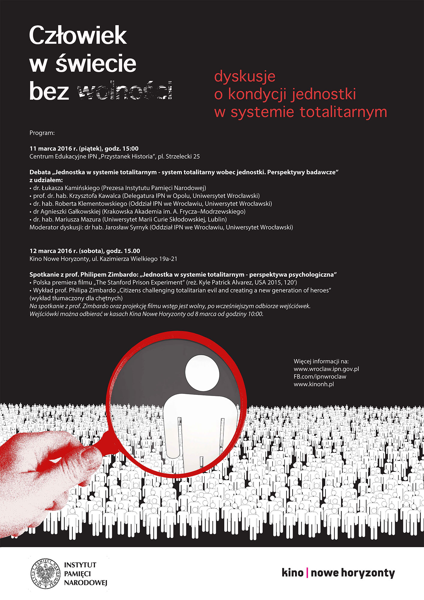 On 11 and 12 March two events that the IPN organized under the slogan „A man in a world without freedom. Discussions about the condition of the individual in a totalitarian world" were held in Wrocław. This is the first of the activities of the Institute in the framework of our participation in the European Capital of Culture - Wrocław 2016. The programme of events planned by the Institute in connection with the ECC is implemented under the theme „A world without freedom.”
