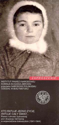 On August 18th, 2003, at 2 p.m. in the Białystok Cultural Centre an opening on the exhibition “Who Saves One Life, Saves the Whole World ... Assistance to Jewish People under the German Occupation in the Białystok Voivodship (1941-1944)” prepared by the Branch Public Education Office in Białystok will take place. Mr. Aleksander Kwaśniewski, President of Poland, is an honorary patron of the exhibition