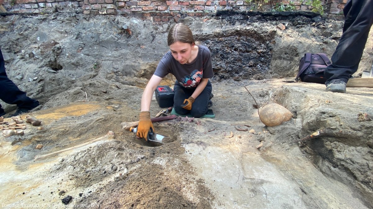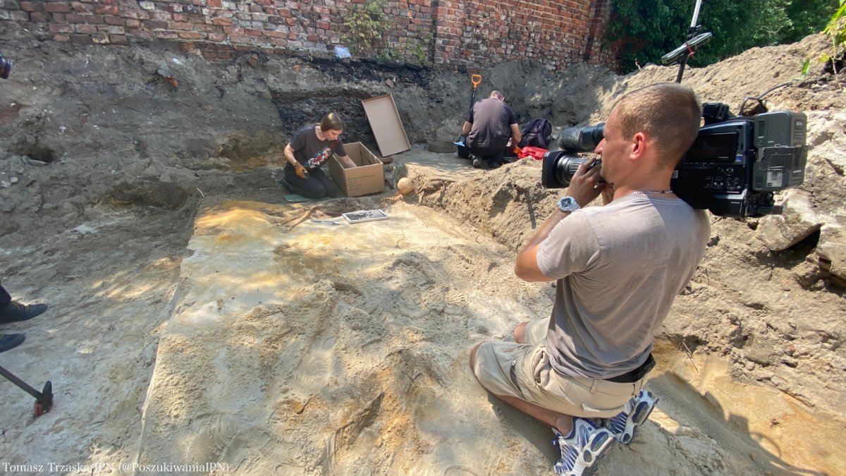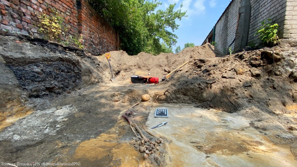 Prof. Krzysztof Szwagrzyk, the Deputy President of the Institute of National Remembrance and the Director of the IPN’s Office of Search and Identification, said: We have started the next stage of exploration works in the former "Toledo" prison in Warsaw's Praga district. We worked here last year and this year, finding the remains of 19 people. At the moment, we are standing in front of the place where the remains of another person have been found. The outlines of subsequent burial pits have been revealed. We still have over a week of work ahead of us. We will explore the area of the former prison garden, right next to the old fragment of the wall. We can promise that - as always - until the entire area has been thoroughly explored, we will not call it a day! We believe that we will reveal not only the remains which have been discovered today, but that there will be more of them.