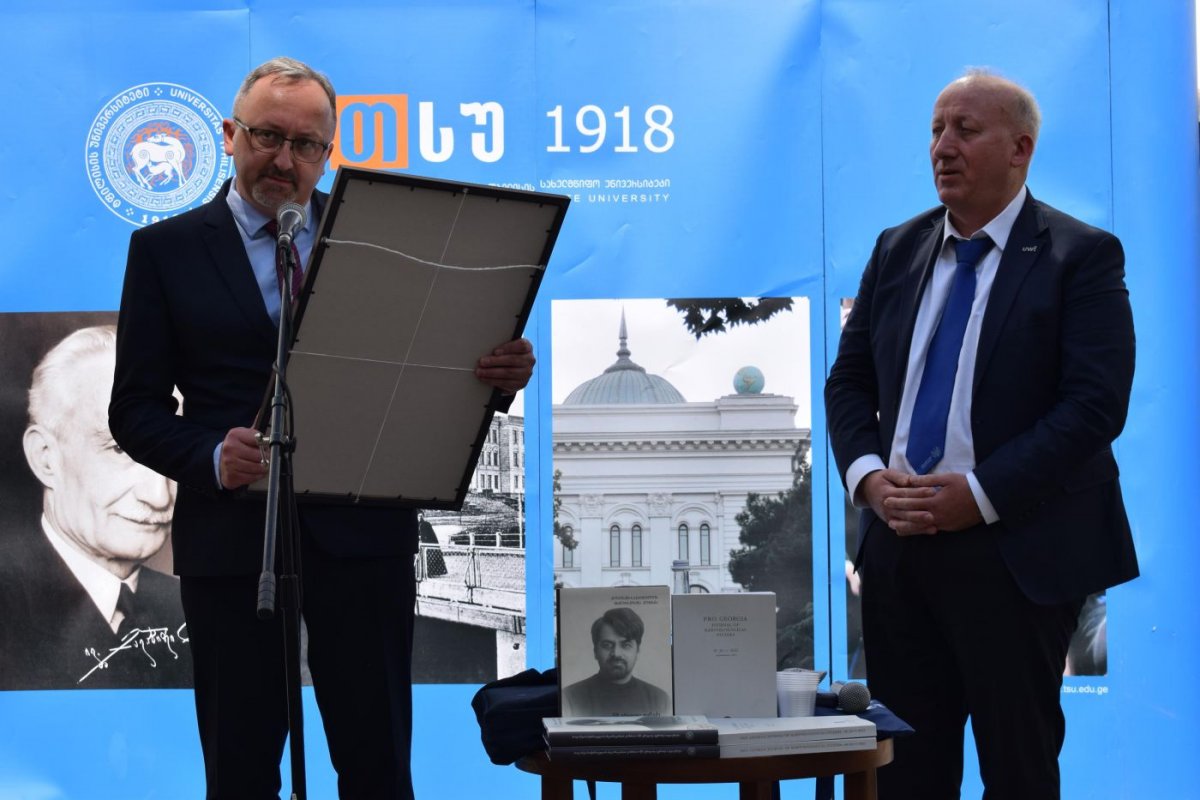 During the visit to Georgia, the IPN’s Deputy President of the Institute of National Remembrance, Karol Polejowski, Ph.S., D.Sc. also met with Georgian members of the Polish-Georgian Historians’ Commission, headed by Dawid Kolbaia, Ph.D., and took part in the presentation of the third volume of the Commission 's work, which took place on 11 September at the I. Javakhishvili University in Tbilisi. As part of the event also, the 30th anniversary of the "Pro Georgia" journal edited by Dawid Kolbaia, Ph.D.. Prof. Chumburidze, an outstanding expert of Caucasian languages, was presented with the St. G. Peradze award.