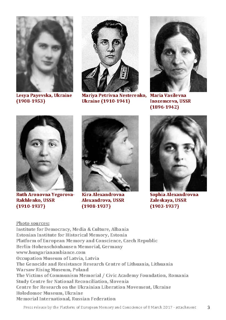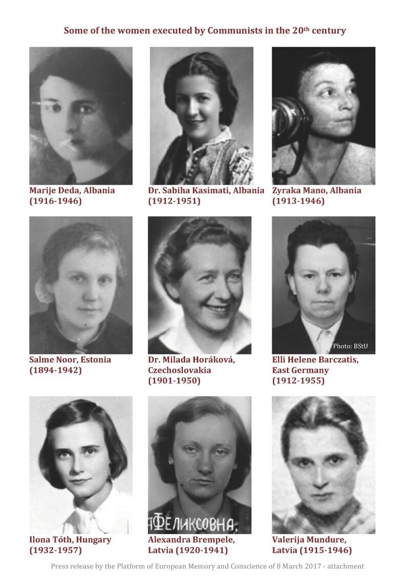 Prague/Tallinn/Riga/Vilnius/Warsaw/Berlin/Dresden/Bratislava/Ljubljana/ Bucharest/Tirana/Kiev/8 March 2017. On 8 March, the day recognised as International Women’s Day, the Platform of European Memory and Conscience calls for a minute of silence at 12.00 noon CET for the millions of women who fell victim to the Communist dictatorship.