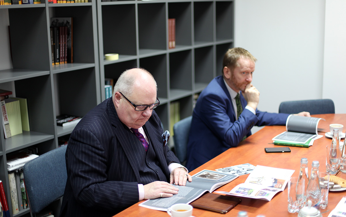 On 9 March 2017 Deputy President of the IPN Dr Mateusz Szpytma hosted Sir Eric Pickles, United Kingdom Special Envoy for Post-Holocaust Issues and Chairman of Conservative Friends of Israel, Natalie Tamam, Chief of Staff to Sir Pickles and Christopher Thompson, Head of Foreign and Security Policy of the British Embassy in Warsaw. The meeting was also attended by Prof. Grzegorz Berendt, Head of the Branch Historical Research Office in Gdańsk, dr. hab. Mirosław Szumiło, Director of the Historical Research Office, Agnieszka Jędrzak, Head of the Division of International Relations and Joanna Kumor. Taking into account the scope of activity of Sir Eric Pickles, the visit at the Institute was an important point in his timetable. Sir Eric was particularly interested in the activity of various pillars of the Institute such as historical research, education, especially with regard to the Holocaust, and exchange of documents. It was stressed that thanks to the IPN’s activities in the field of research and education historical knowledge is spread through teachers to Polish society. Sir Eric inquired about the IPN’s resources and the digitization process. He also raised the subject of exhumations of the German victims of WWII. Sir Eric stressed the role of Poland as a Custodian of the Holocaust Remembrance, as no other country had suffered so much during WWII. The greater the esteem for those who risked their lives to help the Jews. President Szpytma, in turn, expressed the gratitude for the support of Great Britain for the Polish Government in exile during the war, which thanks to the British hospitality was able to talk openly about the atrocities of war and morally support the Poles. It was unanimously agreed that further cooperation in commemorating the Holocaust is of vital importance for the sake of truth and future generations. Poland and Great Britain are united through common history, especially WWII during which they had fought arm in arm.