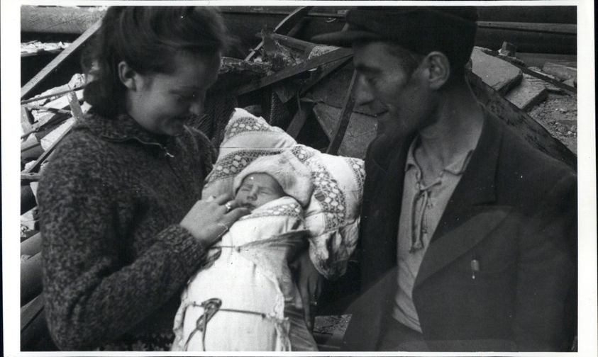 Our special guest, Stefan Piątkowski, told us his sister’s story related to the photo. In April 1941, Barbara Piątkowska as a young girl was taken to forced labor in Germany. At first, she worked in a munitions factory, then in a shoe factory. In July 1942, she escaped from Germany and reached Warsaw, where she got married. All the time she was in danger of being arrested. A change of name prevented her from being arrested and deported again. Barbara's daughter, Jadwiga, was born on 28 August 1944. Mr. Piątkowski recalled that during the labor, there were air raids, and in order to protect his sister from plaster falling from the wall, a blanket was spread over her. Barbara, her husband and her daughter luckily survived the Uprising. They ended up in the camp in Pruszków. Barbara left her daughter under the care of her husband to protect him from repressions while she was transported to Germany. In the vicinity of Częstochowa she managed to escape and reunite with her family. After the war, they returned to Warsaw and lived on Próżna Street.