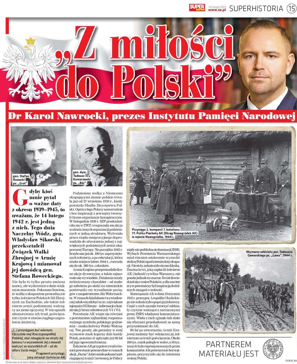 If someone were to ask me about important dates between 1939 and 1945, I think 14 February 1942 would be one of them. On that day, Commander-in-Chief Gen. Władysław Sikorski transformed the Union of Armed Struggle into the Home Army and appointed General Stefan Rowecki as its commander.