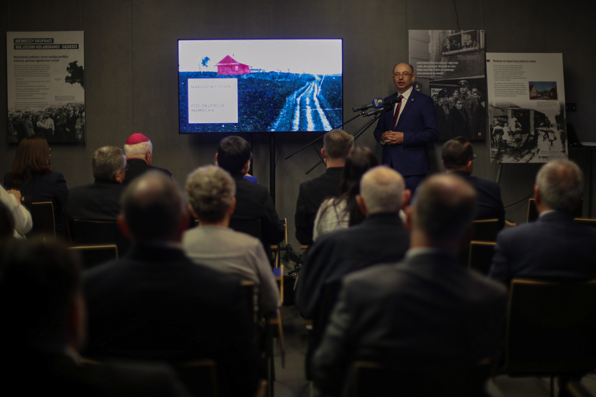 During this year's celebrations, with the participation of the Deputy President of the IPN, Mateusz Szpytma, Ph.D., plaques on the Memorial Wall at the premises of the Ulma Family Museum were unveiled to commemorate the members of the “Ładoś Group” which organized and produced illegal Latin American passports during World War II. The passports were then handed over to European Jews to save them from extermination. The “Ładoś Group” consisted of, among others: Aleksander Ładoś, the Ambassador of the Republic of Poland to Bern, his Deputy Stefan Ryniewicz, Consul Konstanty Rokicki, as well as the Attache of the Embassy, Juliusz Kuehl. Their partners were two Jewish organizations - the RELICO Committee headed by Abraham Silberschein and the Swiss branch of Aguda Yisroel led by Chaim Eiss. During the speeches the history of the “Ładoś Group” was recalled.