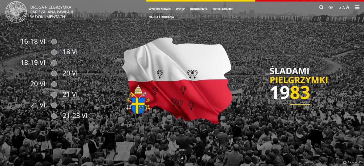 On the IPN’s portal pielgrzymki.ipn.gov.pl devoted to Papal pilgrimages to the homeland in 1979, 1983 and 1987, we present digital copies of documents constituting the archival legacy of the activities of the communist Security Services, descriptions of the various stages of the pilgrimages, photographs (taken both by the Security Services as part of official activities, as well as photos from private collections), links to historical and educational articles, leaflets, copies of the Polish community press and many other archival memorabilia of John Paul II's visits.
