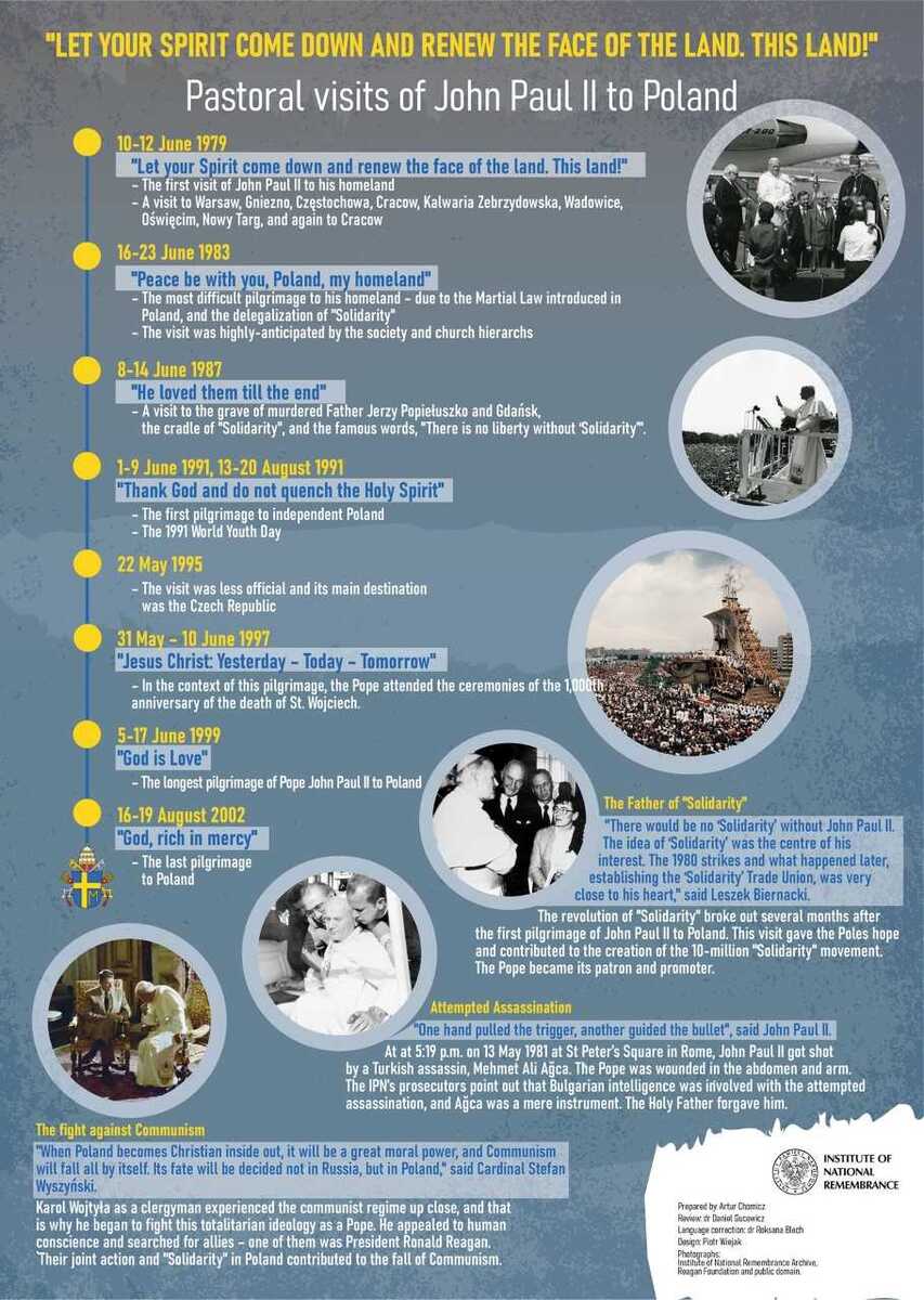 The collected materials constitute not only a unique testimony of those times, the social moods and details of the activities of the communist services, but also proof of the high hopes and expectations Poles placed in the Pope, who was always supported his compatriots in difficult times. We have prepared a special section for English-language readers, in which all three pilgrimages have been described.
