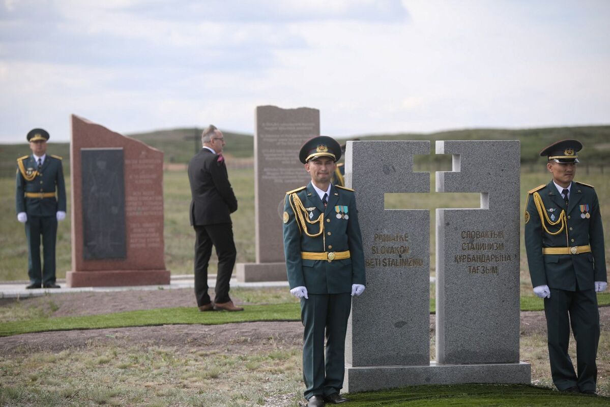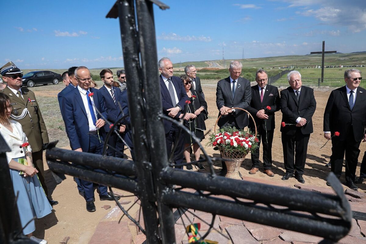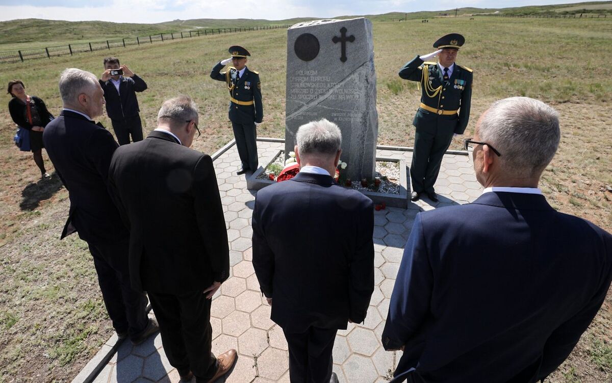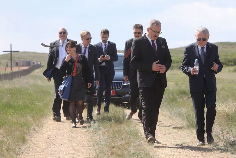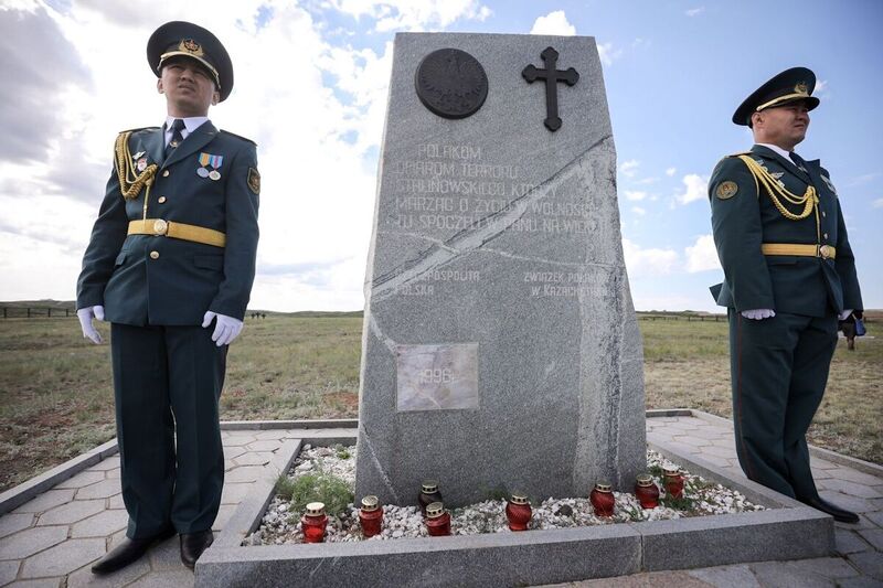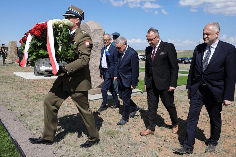 On 31 May, Prof. Karol Polejowski together with Selim Khasbijevich, the Polish Ambassador to Kazakhstan, laid flowers at the site of the former NKVD camp in Spassek, near Karaganda. The camp, established in 1941, held thousands of prisoners of war of various nationalities, including several hundred Poles. At the site of the former camp a cemetery, where victims of Stalin's repressions from various countries are commemorated, is located. There is also a monument in memory of Poles with the following inscription: To the Poles — victims of Stalinist terror, who dreaming of a life in freedom rest in the Lord for ever — Republic of Poland / Union of Poles in Kazakhstan, 1996