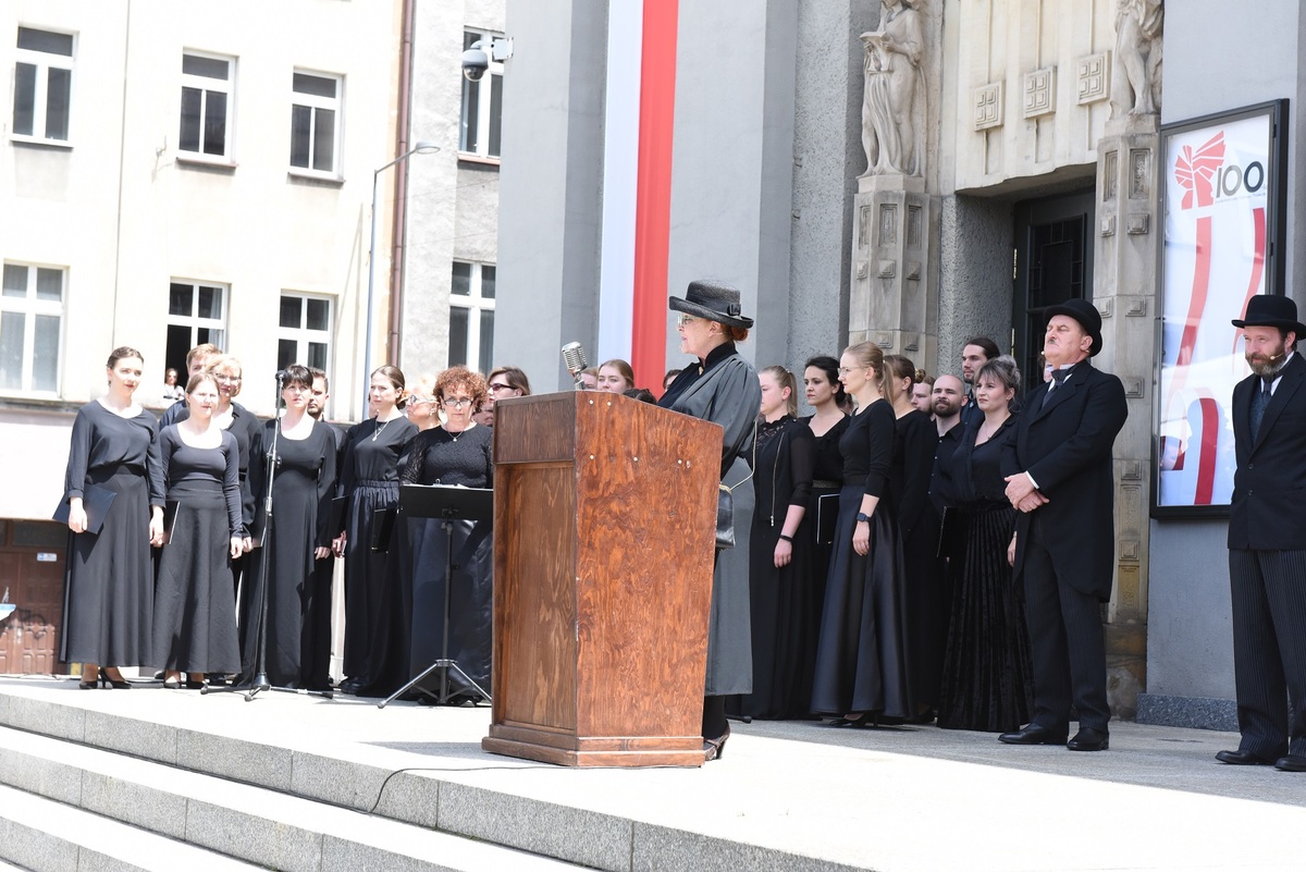 The main celebrations took place on 19 June 2022. They started with a Pontifical Mass presided by Archbishop Wojciech Polak at the Archcathedral of Christ the King. The service was attended, among others, by Prime Minister Mateusz Morawiecki. At noon, the unveiling of a commemorative plaque took place in the Katowice Market Square followed by a reenactment of the Polish Army's entry into Katowice. The reconstruction of the events which took place 100 years ago, depicted General Stanisław Szeptycki entering Katowice along with his troops through the triumphal gate. This time, the Polish Army Cavalry Squadron entered the city through the symbolic gate, while actors from the Silesian Theatre portrayed Wojciech Korfanty, Józef Rymer and others.