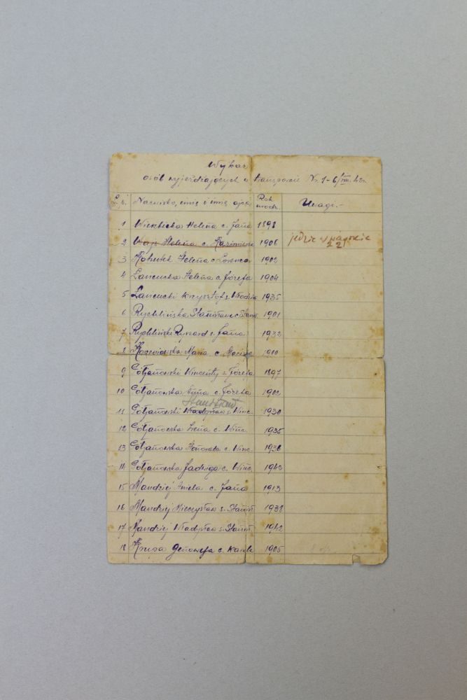 The materials handed over to the Archive by Krzysztof Łańcucki portray the fate of his mother Helena, caught up in the whirlwind of war, in the period from her deportation into the USSR to the liquidation of the Polish Estate in Tengeru in 1950. Among them are certificates issued for Helena Łańcucka by Polish authorities in Teheran, official letters by Polish consular authorities concerning her sea voyage to the British Eastern Africa, documents linked with her teaching work in Tengeru, letters granting financial aid from Polish authorities in exile or testimonies by members of the Polish Estate in Tengeru, confirming the prewar past of Helena Łańcucka and her marriage with Włodzimierz Łańcucki. Among the most valuable and concurrently the most interesting materials one may recount a letter of Lieutenant Włodzimierz Łańcucki, of 25 November 1939 r., written to his family from a Soviet POW camp in Kozielsk, list of 55 persons (including H. Łańcucka and her son Krzysztof) leaving the USSR for Iran by transport no. 1 on 6 August 1942, list of goods taken by H. Łańcucka in connection with her departure to Iran and her correspondence with the Command of the Polish Army in the East and Delegation of the Polish Red Cross in Eastern Africa of 1943, concerning the search for her husband Lieutenant W. Łańcucki. The documents constitute a valuable contribution to the IPN’s archival resource and a captivating material to conduct research on the history of Polish deportees to the USSR who settled abroad after the war.