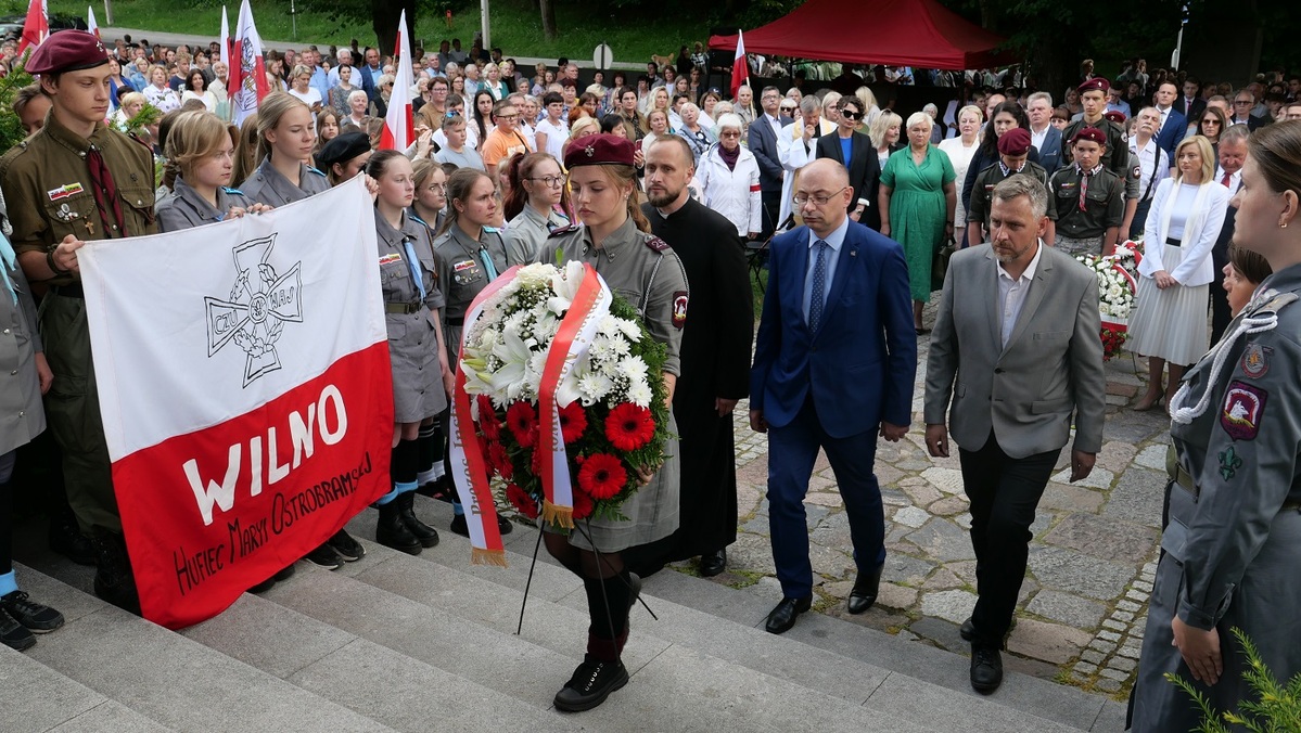 In his speech, Mateusz Szpytma talked about Polish blood spilled by German Nazi and Soviet communist regimes in the Vilnius region, recalled thousands of victims of the notorious execution sites in Ponary and Lukiškės Prison, and thanked the local Polish diaspora for tending to Polish graves and safeguarding the memory of the heroes.