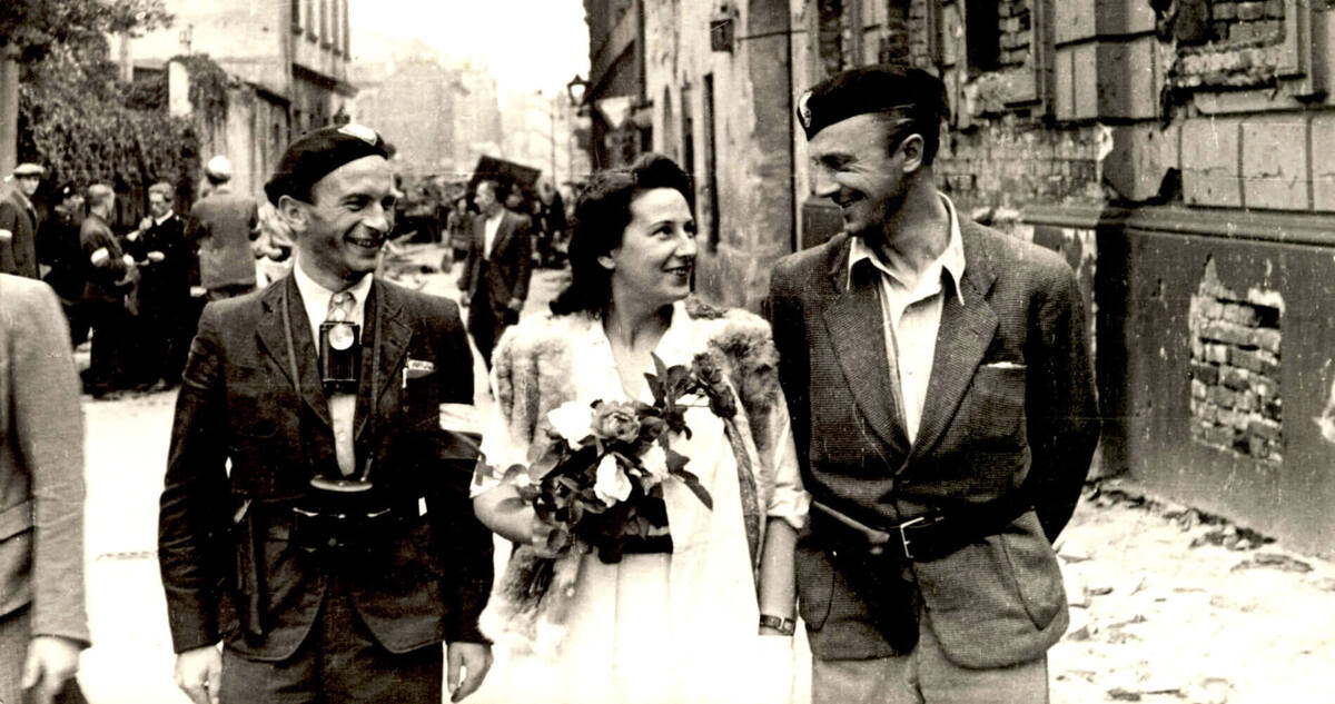 À première vue – un mariage typique. Le prêtre lit à haute voix les paroles des vœux de mariage. La mariée et le marié les répètent scrupuleusement et procèdent à l’échange des anneaux. Suit le baiser du jeune coupe, les fleurs et les félicitations de la part des nombreux invités. Le photographe et même l’équipe de tournage sont au rendez-vous. La cérémonie, qui s’est déroulée à Varsovie le 13 août 1944, est cependant unique. Le marié, vêtu d’un uniforme militaire, Bolesław Biega, 22 ans, a le bras en écharpe – le résultat de blessures subies quelques jours plus tôt lorsqu’il a participé à la bataille pour la Poste centrale. La mariée, Alicja Treutler, 20 ans, porte une chemisette empruntée au lieu d’une robe blanche, et un brassard avec une croix rouge sur le bras – signe qu’elle est infirmière. Le mariage se déroule dans des conditions improvisées, et il faut oublier la lune de miel. Tout autour, des coups de feu retentissent et des bombes explosent. La deuxième semaine de l’insurrection de Varsovie est sur le point de s’achever.