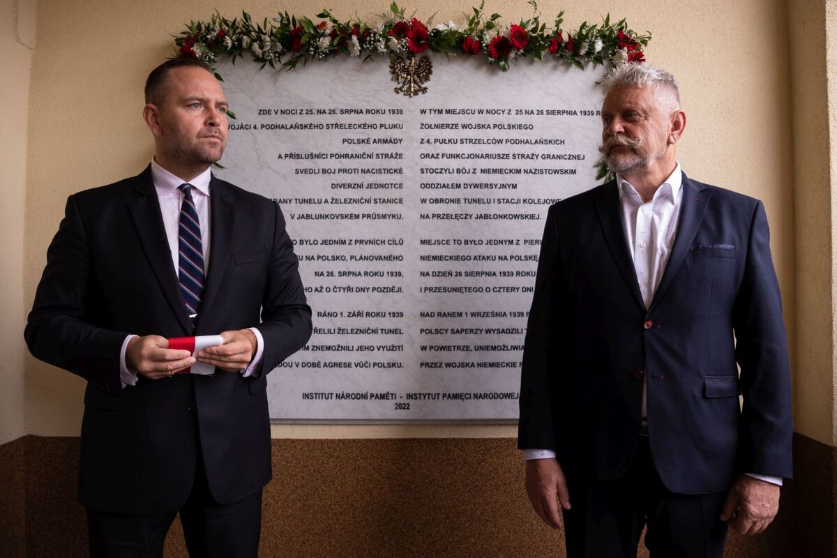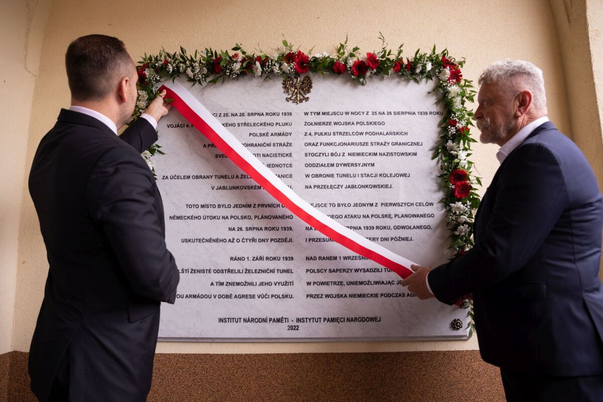 A plaque commemorating the August 1939 clash between the German commando and Polish soldiers and border guards near Jabłonków, was unveiled today by the IPN President Karol Nawrocki, Ph.D. and the Mayor of Mosty Municipality Andrzej Niedoba. The ceremony was organised by the Consulate General of the Republic of Poland in Ostrava, in cooperation with the Institute of National Remembrance and the Mosty Municipality.