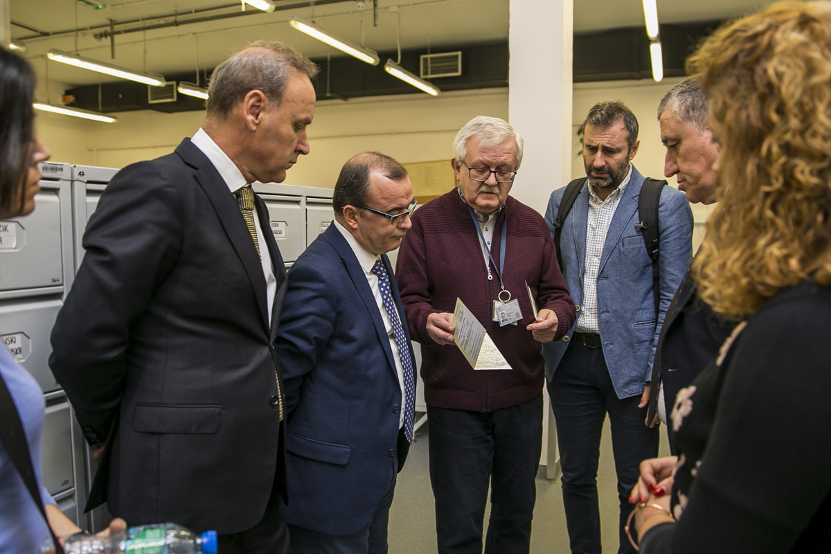 The Albanian delegation also visited the IPN’s Archives. The guests were welcomed by the director of the IPN Archives, Marzena Kruk. During the meeting Magdalena Molczanowska, head of the Department of Archival Research and Education, presented the resources and tasks of the IPN Archives. As part of the visit, our guests visited the archives inventory, where they had the opportunity to see the conditions of storage and preservation of archival materials. They also learned about the procedures for recruiting and registering agents of the communist secret services.