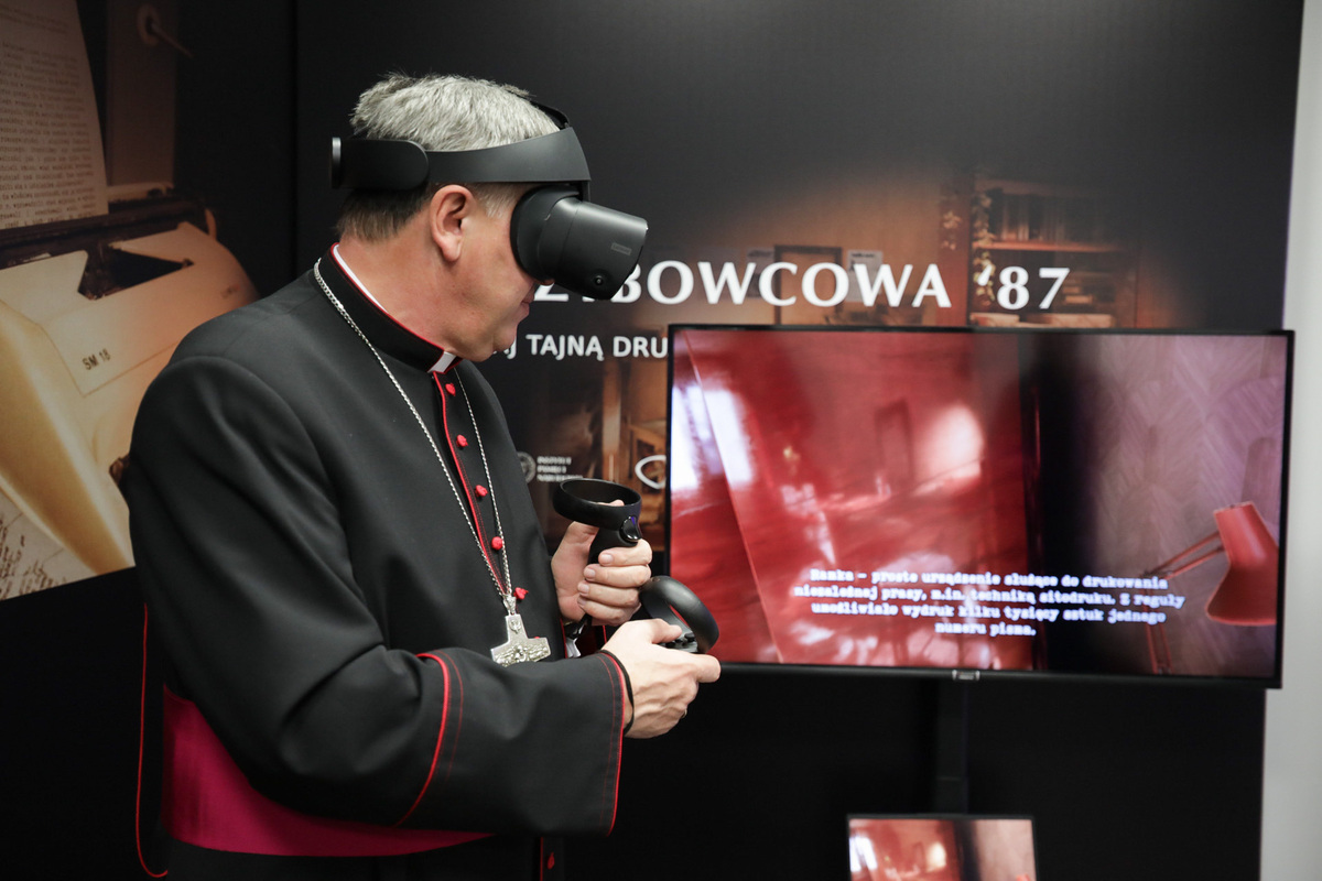The app enables users to enter a communist-era apartment building, where an underground printing house is located. They will also have a chance to turn on the TV and hear a broadcast of radio "Fighting Solidarity" and a sample of communist daily television, as well as viewing a clandestine newspaper and listening to encrypted conversations between communist Security Service officers. The application was created by the IPN's Office of New Technologies.