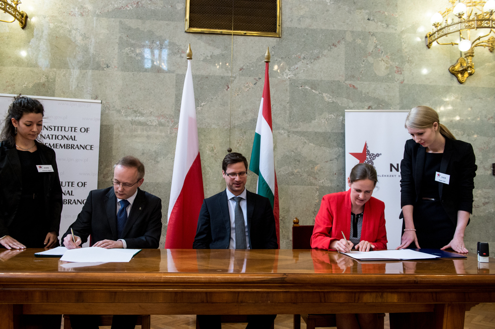On Wednesday (April 22, 2015) in the building of the Hungarian parliament in Budapest, Földváryné Réka Kiss, the head of the Hungarian Committee of National Remembrance (Nemzeti Emlékezet Bizottságának – NEB) and Łukasz Kamiński, president of the Polish Institute of National Remembrance signed an agreement on cooperation in the field of education, historical research and archival documentation. On the same day, at the National University of Public Service in Budapest both presidents gave a lecture to its students and faculty professors on the memory of totalitarianism in the twentieth century.